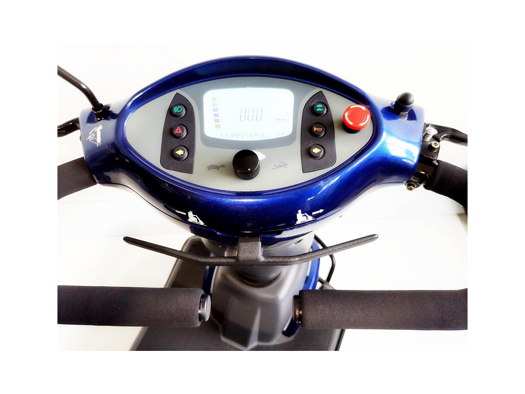 Excel Galaxy Compact, skútr střední velikosti, je perfektně přizpůsoben jak pro indoor, tak outdoor použití. Vyznačuje se plným odpružením, které zajišťuje pohodlnou jízdu na rozmanitých površích. Jeho kapitánské sedadlo lze úplně přizpůsobit vašim potřebám, což zvyšuje komfort uživatele. Skútr je vybaven vysoko položeným předním světlem pro lepší viditelnost a bezpečí, doplněným o brzdová světla a směrovky. Flexibilitu v řízení zajišťují nastavitelná řídítka a područky, což umožňuje uživatelům přizpůsobit skútr podle osobních preferencí. S dojezdem mezi 35 a 40 km, maximální rychlostí 15 km/h, 11-ti palcovými koly a baterií o kapacitě 50 Ah, Excel Galaxy Compact nabízí skvělý výkon. Navíc je vybaven předním košíkem pro praktické uložení osobních věcí, což dělá z něj komplexní řešení pro pohodlnou mobilitu.