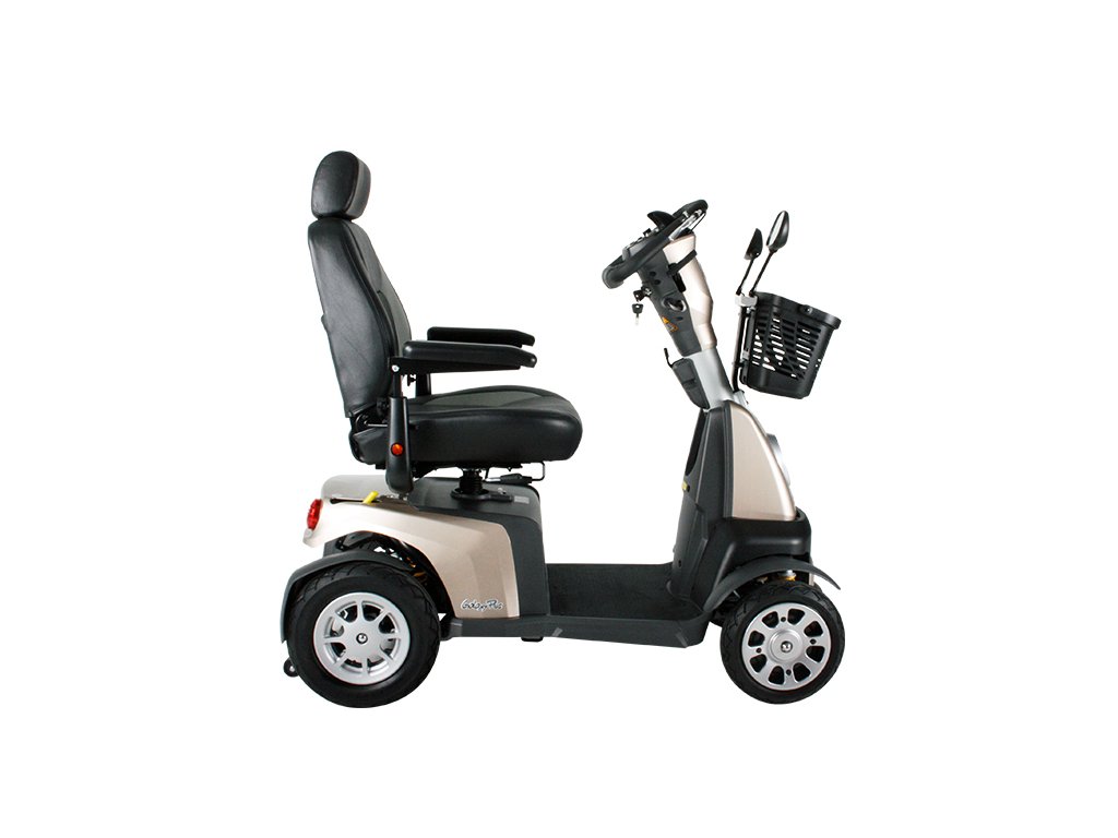 Excel Galaxy Plus je synonymem pro optimální komfort, dlouhou životnost a maximální bezpečnost. Tento čtyřkolový skútr nabízí zvýšenou stabilitu a bezpečí, díky čemuž je ideální pro každodenní cesty. Excel Galaxy Plus se vyznačuje pečlivým výběrem materiálů a moderními technologiemi, které zajišťují jeho jedinečné vlastnosti pro bezpečnou, pohodlnou a nezávislou jízdu. Všechny aspekty tohoto modelu byly navrženy s ohledem na ergonomii, pohodlí a bezpečnost, což činí Galaxy Plus vhodným i pro osoby s problémy se zády. Díky inovativnímu systému, který zajišťuje lepší rovnováhu při rychlém manévrování a ostrých zatáčkách, a plně nastavitelnému sedadlu i řídítkům s přehledným ovládacím panelem, je Excel Galaxy Plus připraven splnit požadavky na komfortní jízdu. S nosností 160 kg, dojezdem 45 km, odpružením zadních kol, rychlostí 15-20 km/h, 14palcovými koly a kapacitou baterie 90 Ah, je tento skútr vybaven vším potřebným pro dlouhé výlety i každodenní používání, včetně praktického předního košíku.