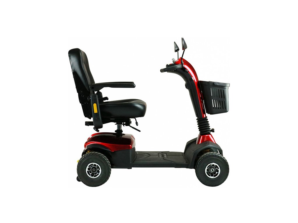 Excel Senzo, navržený pro flexibilní použití jak vnitřních, tak venkovních prostor, je invalidní skútr, který poskytuje komfort a bezpečí díky svému přednímu a zadnímu zavěšení pro optimální tlumení nárazů. Sedadlo skútru je možné plně přizpůsobit potřebám uživatele, což zajišťuje vynikající pohodlí během sezení i jízdy. S kompletním osvětlením, včetně směrovek a výstražného světla, zvyšuje Excel Senzo bezpečnost v provozu. Plynule nastavitelný sloupek řízení a loketní opěrky, které lze sklápět a nastavovat, společně s odnímatelným nákupním košem, přispívají k praktičnosti a uživatelskému komfortu tohoto skútru. S dojezdem 24 km je ideální pro každodenní použití jak v interiéru, tak na venkovních výletech, a nabízí se ve třech lákavých barvách: červené, modré a šampaňské, což umožňuje uživatelům vybrat si variantu, která nejvíce vyhovuje jejich stylu.