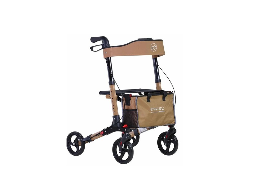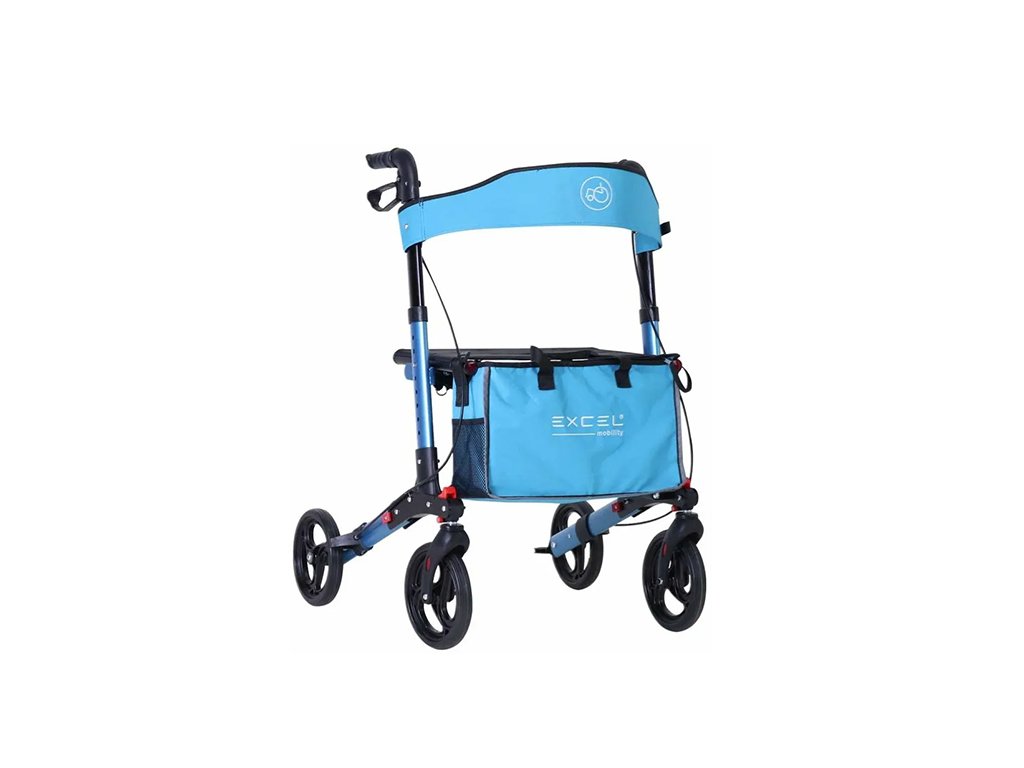 Chodítko je navíc vybaveno prostornou, odnímatelnou taškou s praktickým popruhem přes rameno, která odpovídá barvě chodítka, což přidává na praktičnosti i stylovosti. Důraz na pohodlí a podporu je zřejmý díky pohodlnému sedadlu, zádovému popruhu a výškově nastavitelným rukojetím, což činí z Excel Triple Motion ideální volbu pro ty, kdo hledají spolehlivou oporu s vynikající manévrovatelností a osobitým stylem.